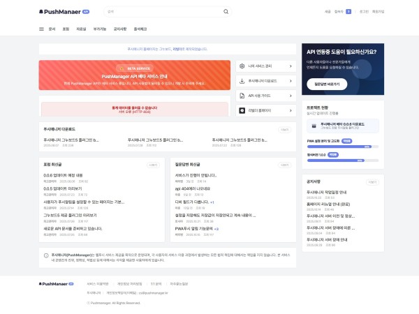 New Basic Layout을 이용해 제작된 푸시매니저 홈페이지 입니다.푸시매니저에서는 웹호스팅 환경에서의 그누보드에서 손쉽게 푸시알림을 구현할 수 있으며,크론잡까지 지원하고 있…